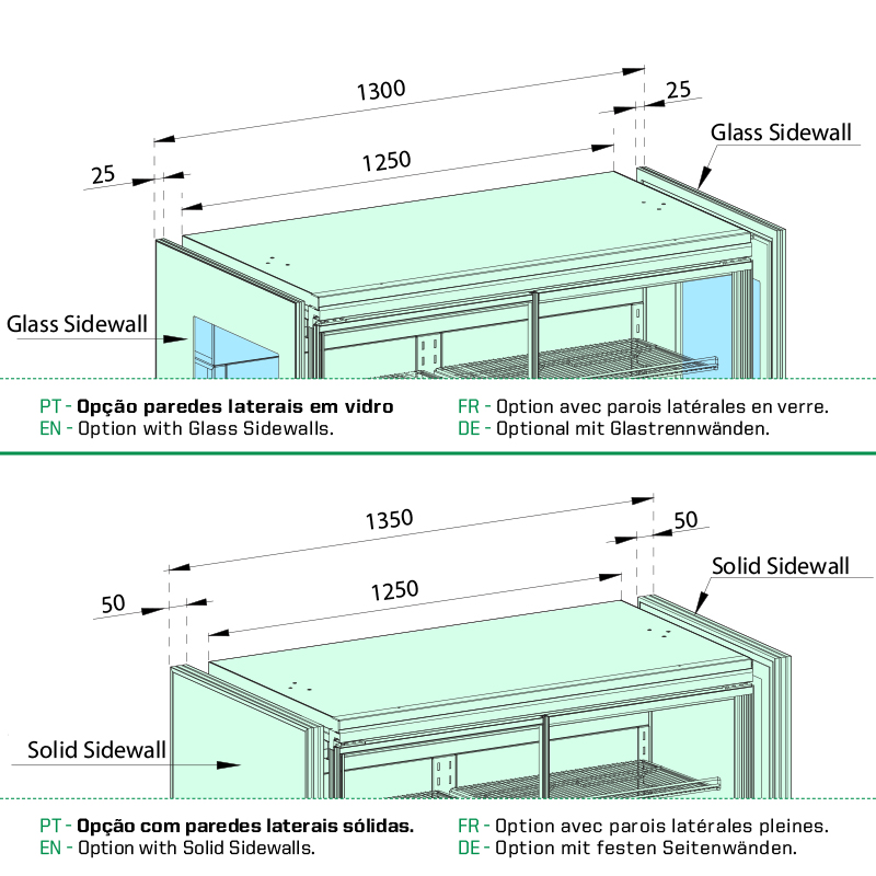 Intérieur et extérieur en tôle galvanisée revêtue de PVC, conforme aux normes alimentaires ; évaporateur, condenseur et circuit frigorifique entièrement en cuivre ; condenseur sans entretien.
